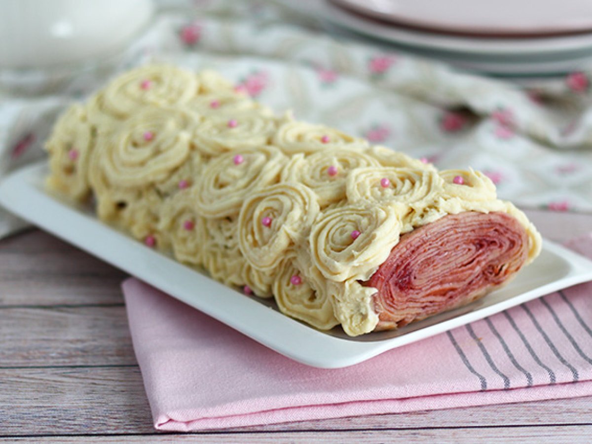 Crêpebund med hvid chokolade og hindbær