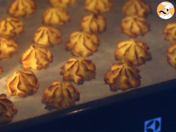 Fyld en sprøjtepose med en rillet tylle med puréen, og form dine pommes duchesses på en bageplade beklædt med bagepapir.