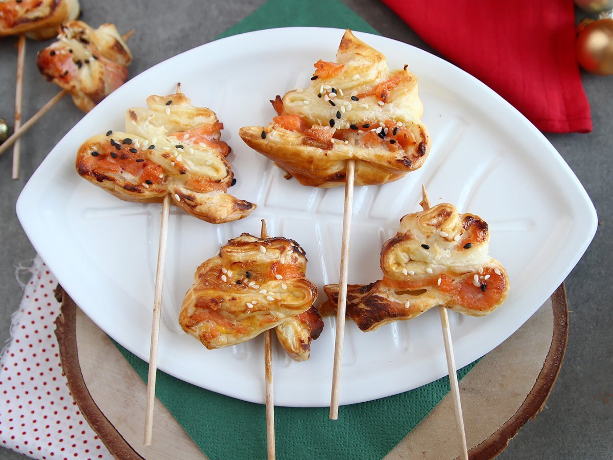 Uanset om du laver dem i sidste øjeblik på den store dag eller dagen efter med rester, vil disse små flager af fyrretræer med to salmer få dine smagsløg til at knase! De er så nemme at lave, så tøv ikke med at involvere dine børn og skab en velsmagende familieaktivitet sammen :-)