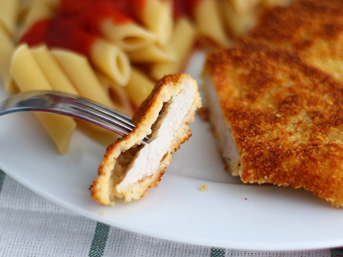 Mere sprødhed: Hvis du vil have et mere sprødt resultat, skal du dyppe din panerede escalope i ægget en gang til og derefter i rasp.