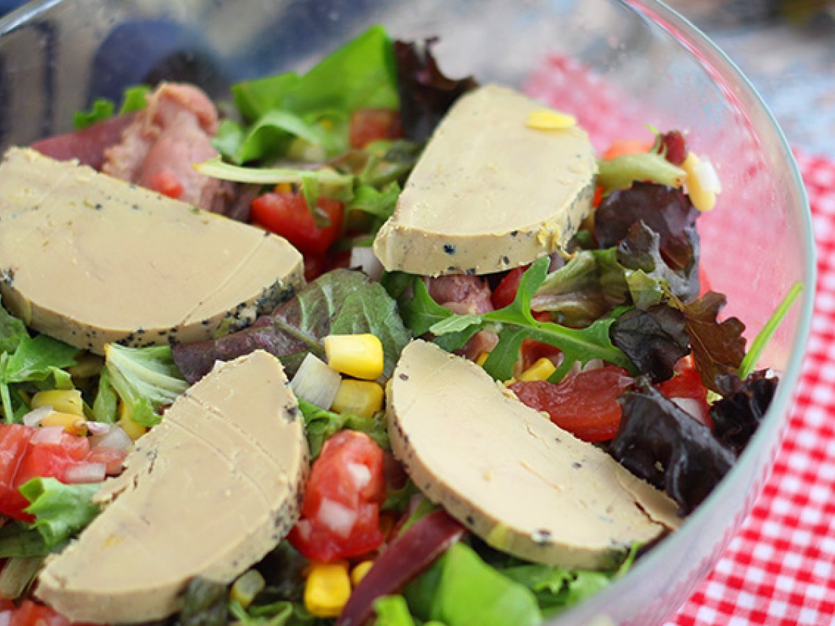 Hvis du vil have en solid festlig salat, så tag til sydvest! En dejlig Landaise-salat med tørret andebryst, andekråser og medaljoner af foie gras. Nok til at få dine gæster til at savle lige fra starten af din menu :-) En nem idé, der ikke skal tilberedes, og som er hurtig at samle. Beviset på, at du kan tilbyde en velsmagende forret uden at bruge timer i køkkenet!