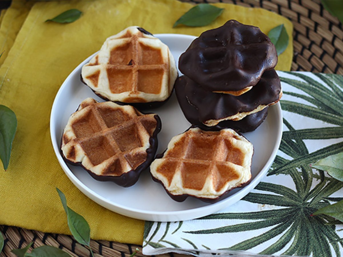 Form små dejstykker, der vejer 21 gram, og tilbered dem i vaffeljernet i ca. 2 minutter og 30 sekunder (afhængigt af maskinens styrke).