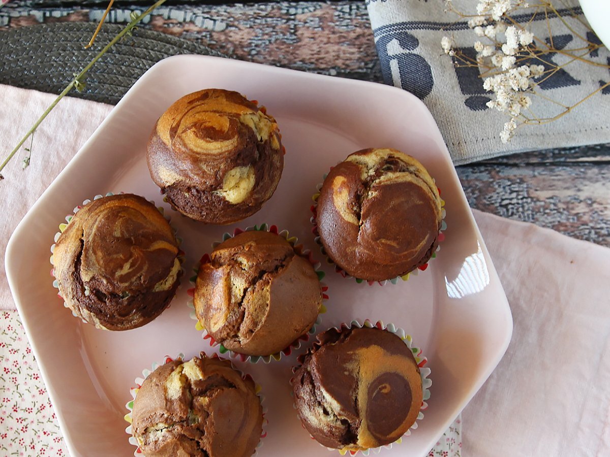 Vi har allerede prøvet kageversionen, så lad os nu prøve marmormuffins! En perfekt kombination af vanilje og chokolade til din pause kl. 16 ;-) Læg dem i en lufttæt dåse, og tag dem med dig, uanset hvor du er. Bonus? Pensl dine muffins med smørepålæg ;-)